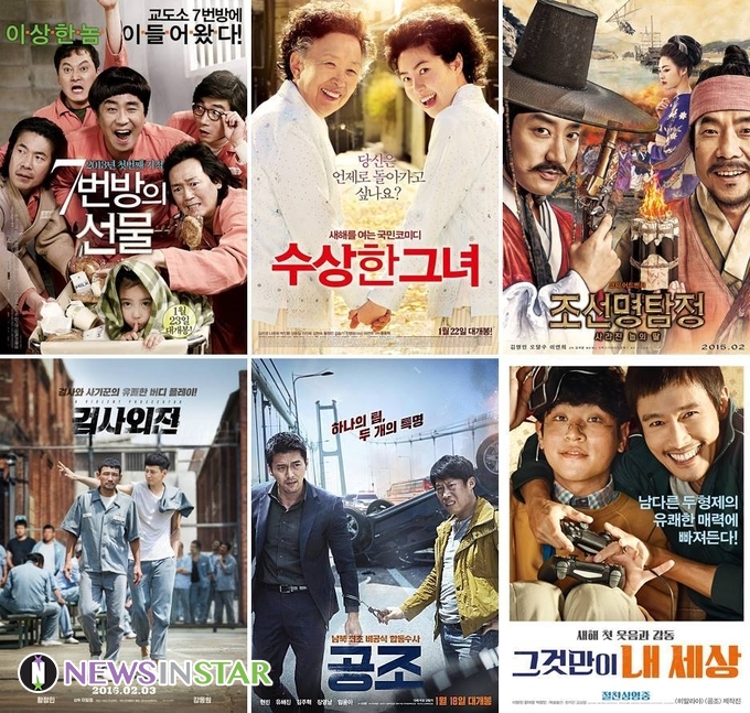 누명을 쓰고 교도소에 들어간 6세 지능의 아빠와 그의 어린 딸, 부녀를 돕는 교도소 사람들의 이야기를 그린 영화 <7번방의 선물>은 독특한 설정과 유쾌한 웃음, 가슴을 울리는 감동 스토리로 1,280만 명의 관객을 사로잡으며 2013년 전체 박스오피스 1위를 차지했다. 이듬해 2014년 스무 살이 된 칠순 할머니의 이야기를 밝고 따뜻하게 그려낸 <수상한 그녀>가 전세대를 아우르는 공감 코미디 영화로 각광받으며 860만명의 관객을 동원, 극장가를 휩쓸었고 2015년 조선시대 코믹 수사극 <조선명탐정 : 사라진 놉의 딸>이 흥행에 성공하며 다시 한번 인기 시리즈의 위용을 과시했다. 이어 2016년 살인 누명을 쓰고 감옥에 갇힌 검사와 세상 밖으로 나온 꽃미남 사기꾼의 버디플레이를 그려낸 범죄 코미디 <검사외전>과 2017년 남북 최초의 공조 수사를 그리며 남북형사의 브로맨스를 제대로 선보였던 액션 코미디 <공조>, 2018년 남다른 두 형제의 울고 웃는 뜨거운 형제애를 담아낸 코믹 드라마 <그것만이 내 세상>까지 흥행에 성공하며 많은 사랑을 받았다. 이처럼 신선하고 기발한 소재와 설정, 배우들의 완벽한 연기력과 호흡으로 만들어낸 환상의 케미, 전세대를 사로잡은 유쾌한 웃음으로 무장한 코미디 영화가 새해 극장가 흥행 불패 신화를 이어가고 있는 가운데 2019년 <극한직업>이 다시 한번 흥행 계보를 이어갈 예정이다.