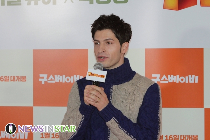 2일 오후 서울시 광진구 자양동 롯데시네마 건대입구에서 영화 ‘구스 베이비’ VIP시사회가 열려 알베르토가 참석해 포토월에서 포즈를 취하고 있다.