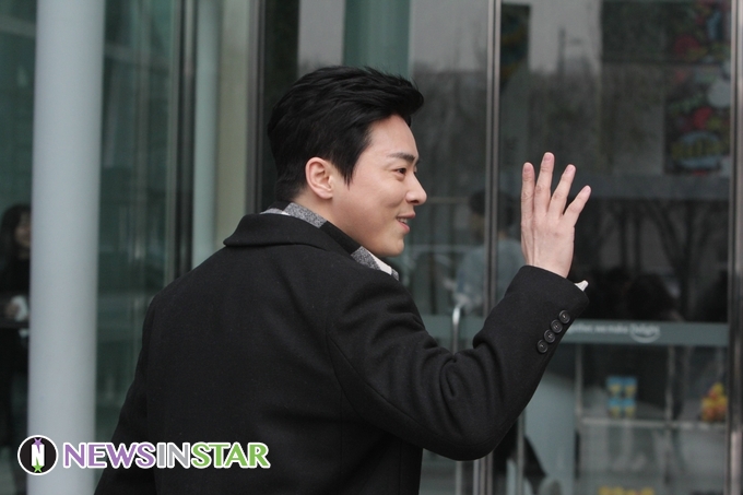 컬투쇼 라디오 방송을 위해  조정석이 출근하고 있다.