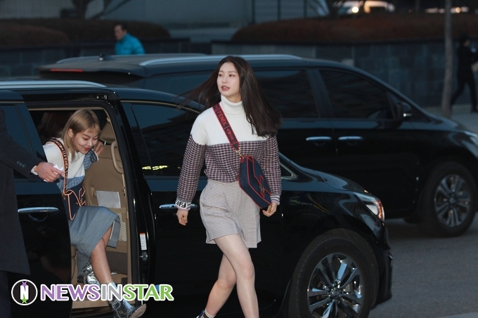 12일 오후 서울시 강남구 압구정동 갤러리아백화점 EAST점에서 이탈리안 브랜드 펜디의 아이콘 바게트의 귀환을 축하하는 '바게트 프렌즈 포에버(#BaguetteFriendsForever)' 이벤트가 열려 모델 송해나, 김진경이 포토월에 입장하고 있다.