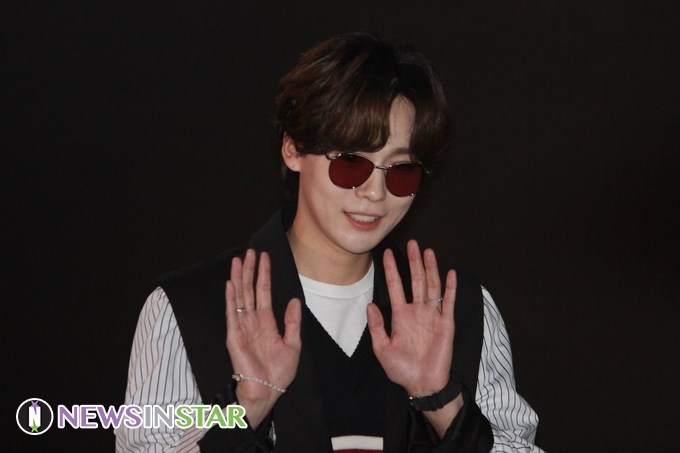 14일 오후 서울시 강남구 가로수길에서 아이웨어 브랜드 '젠틀몬스터(GENTLE MONSTER)'가 새롭게 리뉴얼된 '신사 가로수길 플래그쉽스토어'와 '패러렐' 두 장소에서 2019 컬렉션 '13' 런칭 행사가 열려 위너 김진우가 참석해 포즈를 취하고 있다.