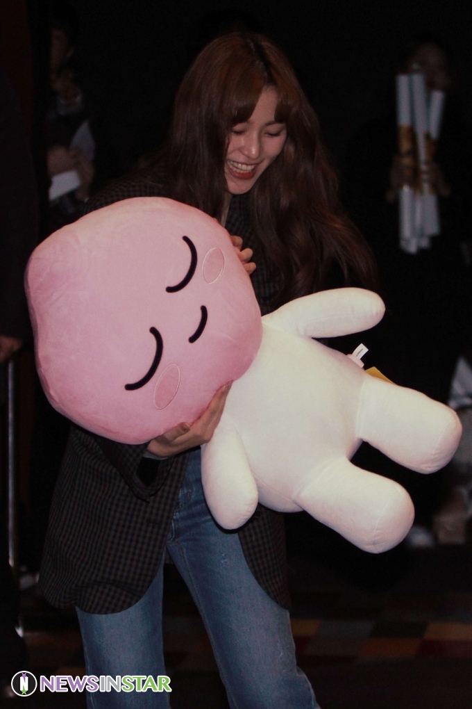 [포토인스타] 이수경, 선물받고 함박 미소 (기묘한 가족 무대인사)