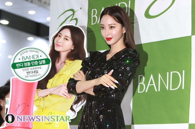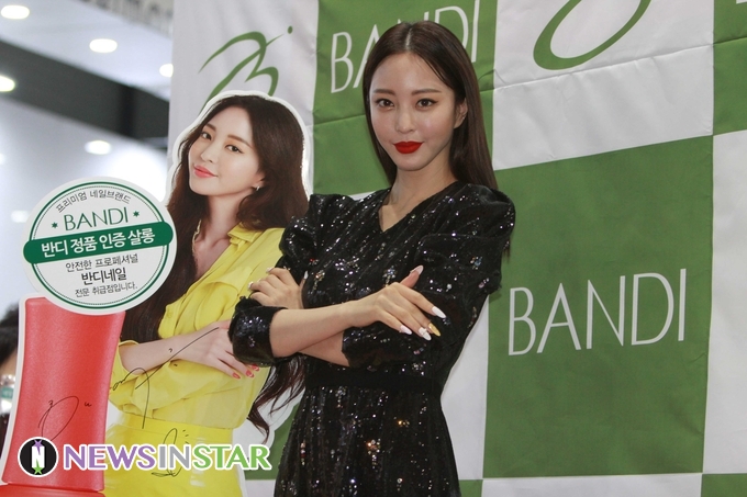3일 오후 서울시 강남구 대치동 SETEC에서 네일 브랜드 반디(BANDI)의 젤리끄 봄 트렌드 '치어링 코랄(Cheering Coral)' 출시 기념 뮤즈 한예슬이 포토월에서 포즈를 취하고 있다.