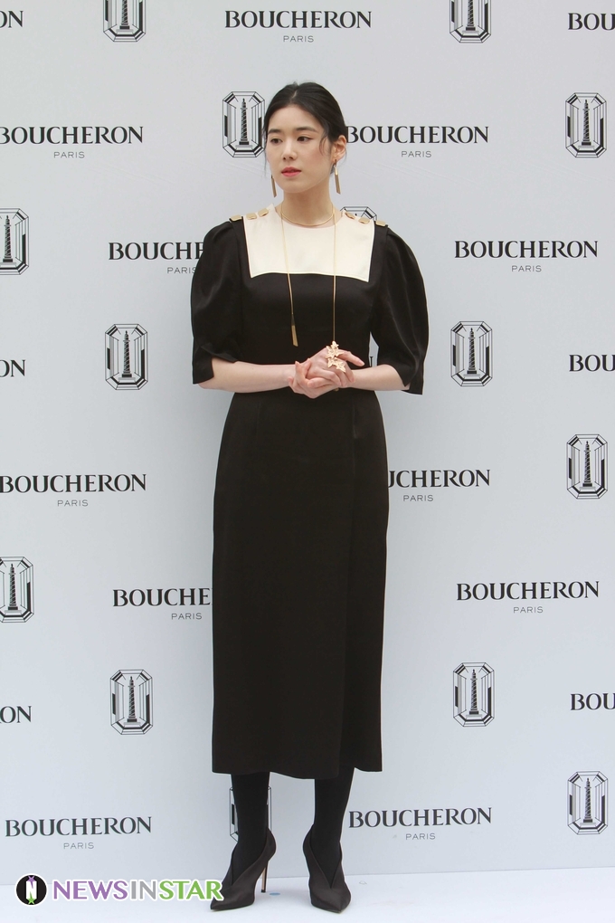 14일 오후 서울시 중구 장충동 신라호텔 영빈관에서 프랑스 주얼러 '부쉐론'이 "Les Salons Boucheron" 이벤트를 개최해 배우 정은채가 참석해 포토월에서 포즈를 취하고 있다.