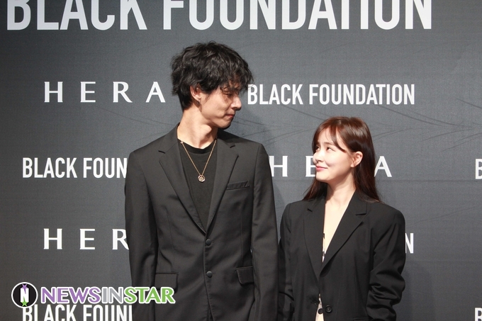 14일 오후 서울시 강남구 논현동 SJ쿤스트할레에서 아모레퍼시픽의 럭셔리 뷰티 브랜드 헤라가 '블랙 파운데이션' 출시 기념 행사를 가져 모델 박기림, 태은이 참석해 포즈를 취하고 있다.