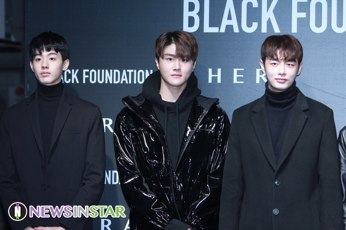 14일 오후 서울시 강남구 논현동 SJ쿤스트할레에서 아모레퍼시픽의 럭셔리 뷰티 브랜드 헤라가 '블랙 파운데이션' 출시 기념 행사를 가져 모델 김기범, 신재혁, 강희, 김현진, 박보성이 참석해 포즈를 취하고 있다.