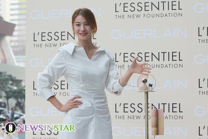 19일 오후 서울시 강남구 반포동 신세계백화점 강남점에서 프랑스 브랜드 '겔랑'이 신제품 '르썽씨엘' 파운데이션 출시를 기념하여 뮤즈 유인영이 참석하여 포토타임을 갖고 있다.
