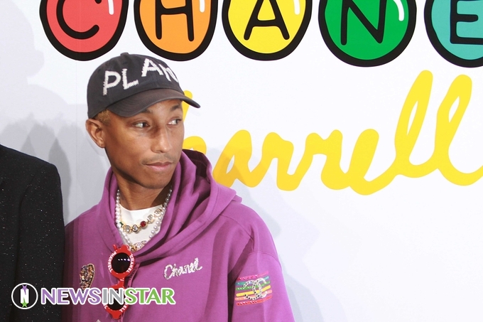 27일 오후 서울시 성동구 성수동 대림창고에서 '샤넬(CHANEL)'의 서울 플래그쉽 오픈 및 퍼넬 캡슐 컬렉션 런칭 행사가 열려 브랜드 엠버서더인 퍼렐 윌리엄스가 참여해 포토월에서 포즈를 취하고 있다.