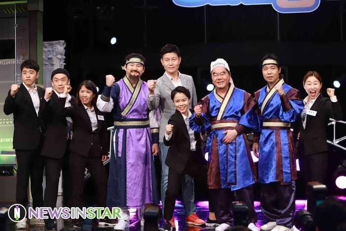 6월 10일 오후 서울시 강서구 IHQ미디어 가양동 스튜디오A에서 ‘스마일 킹’ 기자간담회가 열려 개그맨 박승대, 심형래, 황현희, 김대범, 김정환 등이 참석해 포토타임을 갖고 있다.