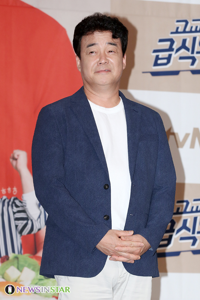 백종원 대표가 11일 오전 서울 마포구 서울가든호텔에서 열린 tvN 예능 '고교급식왕' 제작발표회에서 포즈를 취하고 있다.