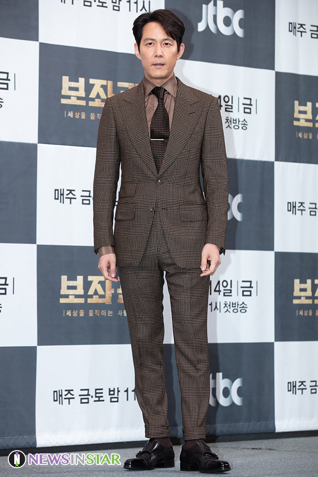 배우 이정재가 13일 오후 서울 강남구 임피리얼 팰리스 서울에서 열린 JTBC 금토드라마 '보좌관-세상을 움직이는 사람들' 제작발표회에서 포즈를 취하고 있다.