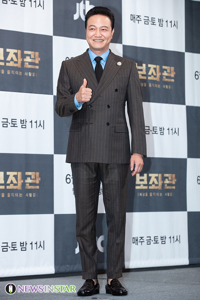 배우 정웅인이 13일 오후 서울 강남구 임피리얼 팰리스 서울에서 열린 JTBC 금토드라마 '보좌관-세상을 움직이는 사람들' 제작발표회에서 포즈를 취하고 있다.