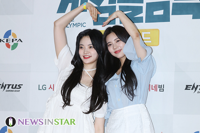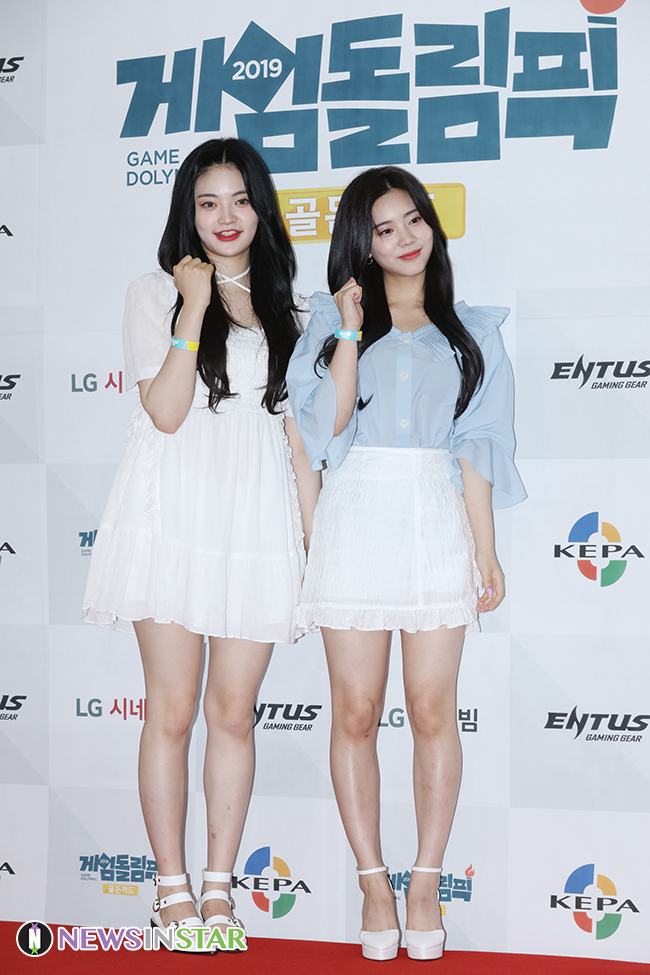 그룹 다이아 솜이, 은채가 17일 오전 서울 마포구 에스플렉스 OGN e스타디움에서 열린 ‘게임돌림픽 2019 : 골든카드’ 레드카펫 행사에서 포즈를 취하고 있다.