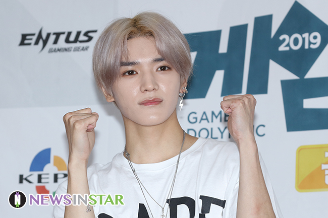 그룹 NCT 태용이 17일 오전 서울 마포구 에스플렉스 OGN e스타디움에서 열린 ‘게임돌림픽 2019 : 골든카드’ 레드카펫 행사에서 포즈를 취하고 있다.
