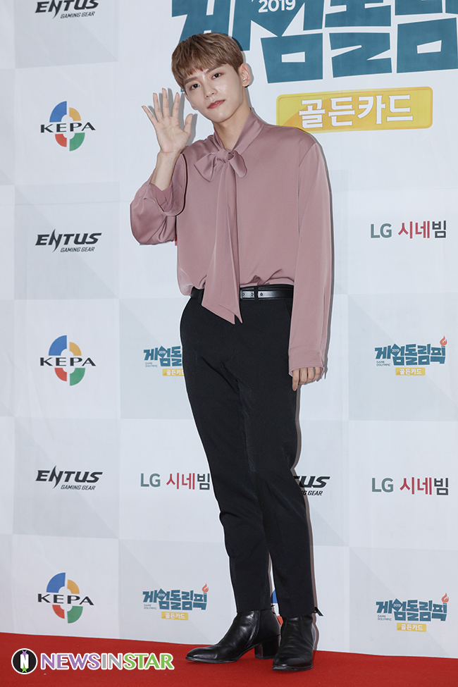 그룹 핫샷 윤산이 17일 오전 서울 마포구 에스플렉스 OGN e스타디움에서 열린 ‘게임돌림픽 2019 : 골든카드’ 레드카펫 행사에서 포즈를 취하고 있다.