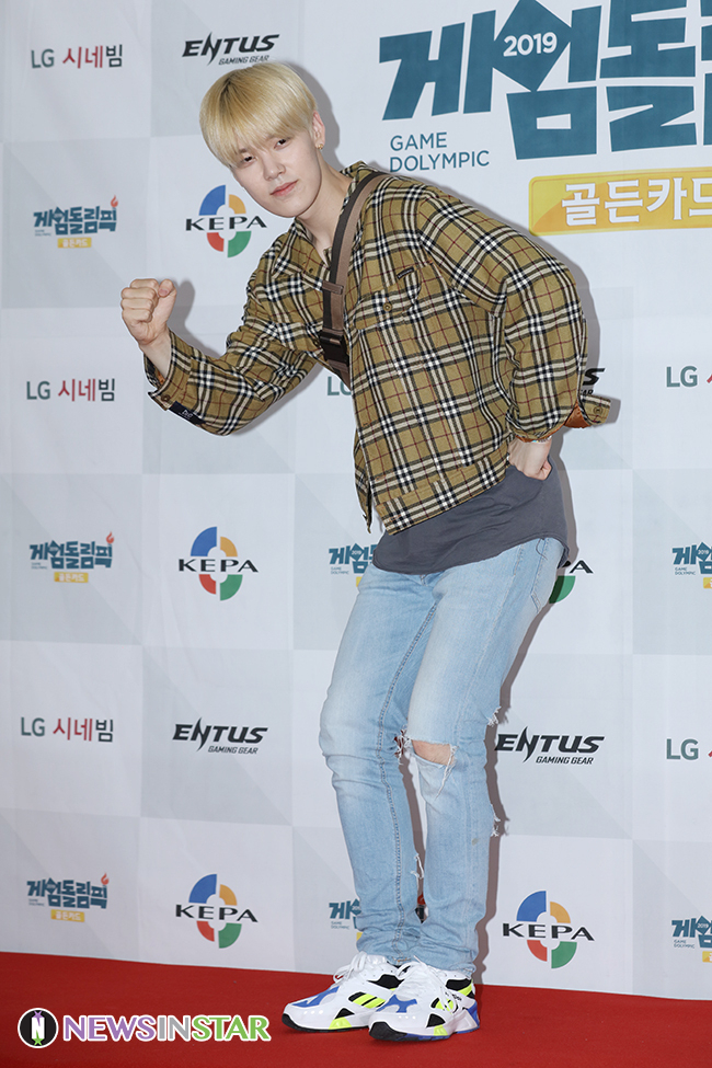 가수 젤로가 17일 오전 서울 마포구 에스플렉스 OGN e스타디움에서 열린 ‘게임돌림픽 2019 : 골든카드’ 레드카펫 행사에서 포즈를 취하고 있다.