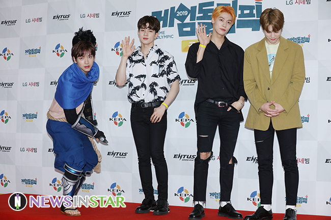 그룹 엔플라잉 멤버들이 17일 오전 서울 마포구 에스플렉스 OGN e스타디움에서 열린 ‘게임돌림픽 2019 : 골든카드’ 레드카펫 행사에서 포즈를 취하고 있다.