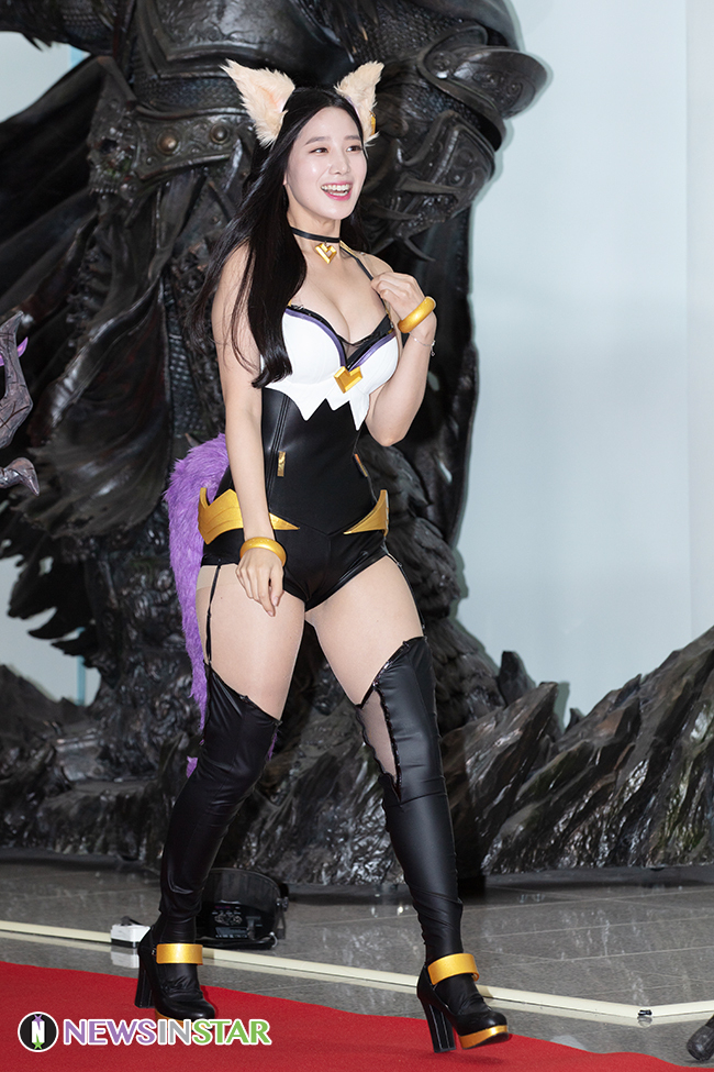 그룹 베리굿 조현이 17일 오전 서울 마포구 에스플렉스 OGN e스타디움에서 열린 게임돌림픽 2019 : 골든카드레드카펫 행사에서 포즈를 취하고 있다.