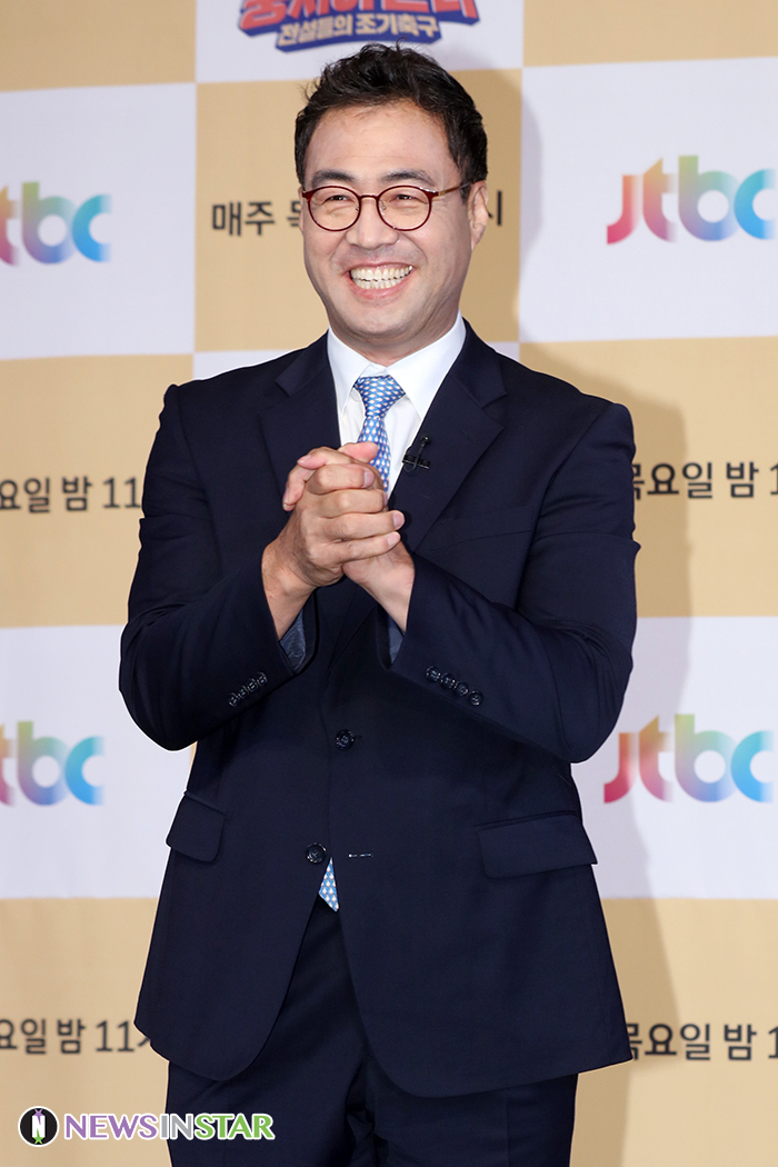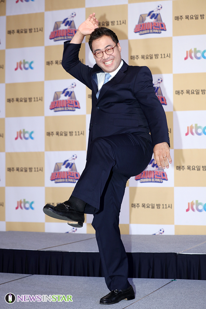 대학교수 이만기가 18일 오전 서울 마포구 서울가든호텔에서 열린 JTBC 예능 '뭉쳐야 찬다' 기자간담회에서 포즈를 취하고 있다.