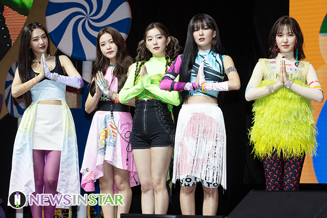 그룹 레드벨벳 멤버들이 19일 서울 용산구 블루스퀘어 아이마켓홀에서 열린 새 미니앨범 ''더 리브 페스티벌' 데이 원('The ReVe Festival' Day 1)’ 쇼케이스에서 포즈를 취하고 있다.