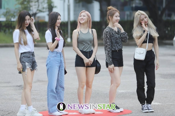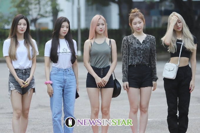 8월 30일 오전 서울시 영등포구 여의도 KBS 신관 공개홀에서 열린 KBS '뮤직뱅크(MUSICBANK)' 리허설에 참석하기 위해 잇지가 출근하고 있다.
