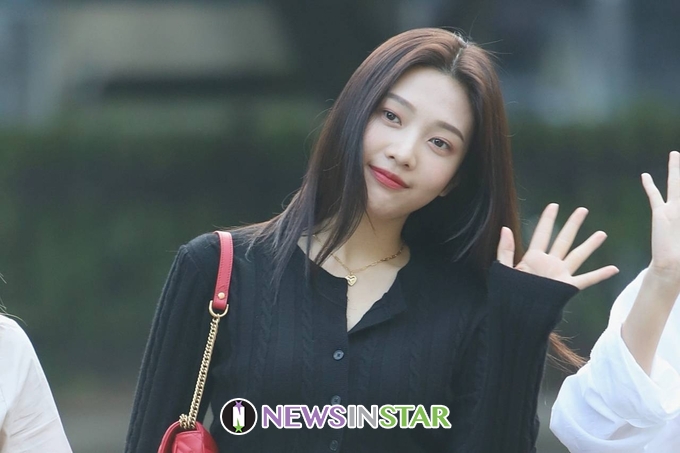 8월 30일 오전 서울시 영등포구 여의도 KBS 신관 공개홀에서 열린 KBS '뮤직뱅크(MUSICBANK)' 리허설에 참석하기 위해 레드벨벳 조이가 출근하고 있다.