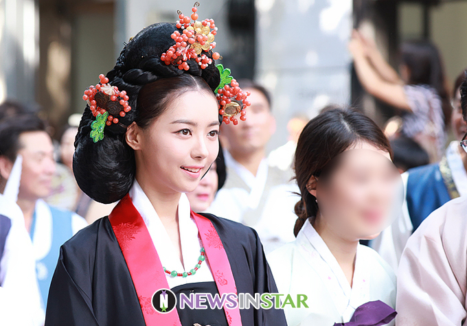 가수 임나영이 31일 오후 서울 종로구에 위치한 인사동 남인사마당에서 열린 인사동 거리 퍼레이드에 참석하여 퍼레이드를 선보이고 있다.
