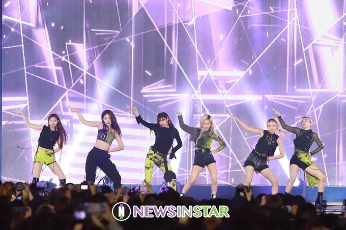 10월 6일 밤 서울시 종로구 광화문광장에서 '제1회 서울 뮤직 페스티벌' 폐막공연인 'SMUF K-POP'이 열려 에버글로우가 'Adios' 무대를 선보이고 있다.
