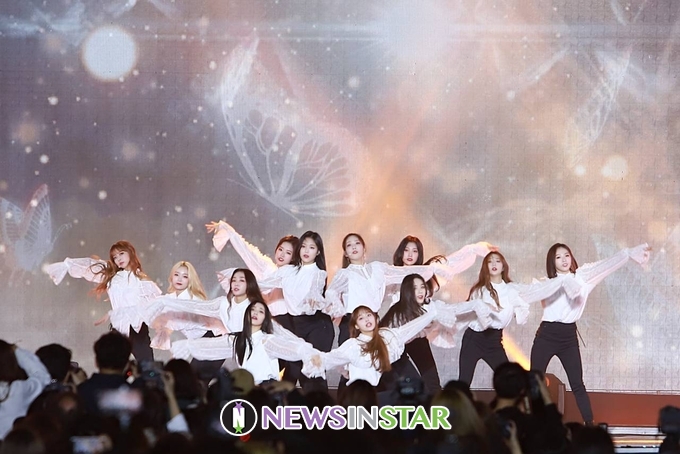 10월 6일 밤 서울시 종로구 광화문광장에서 '제1회 서울 뮤직 페스티벌' 폐막공연인 'SMUF K-POP'이 열려 이달의 소녀가 'Butterfly' 무대를 선보이고 있다.