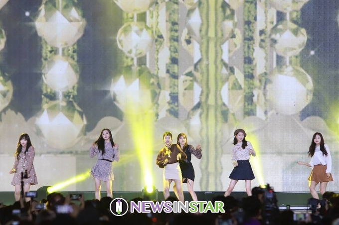 10월 6일 밤 서울시 종로구 광화문광장에서 '제1회 서울 뮤직 페스티벌' 폐막공연인 'SMUF K-POP'이 열려 에이프릴이 '예쁜게 죄 ' 무대를 선보이고 있다.