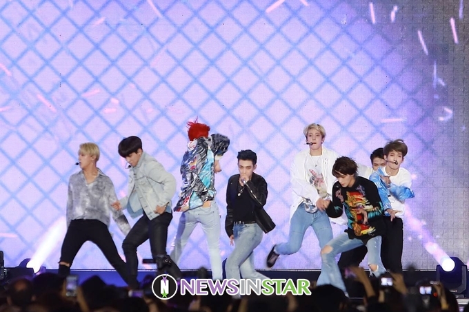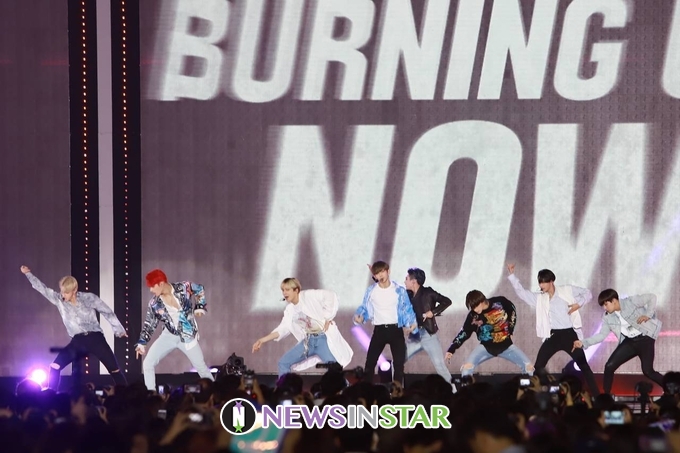 10월 6일 밤 서울시 종로구 광화문광장에서 '제1회 서울 뮤직 페스티벌' 폐막공연인 'SMUF K-POP'이 열려 에이티즈가 'Say My Name' 무대를 선보이고 있다.