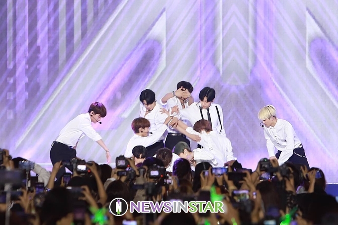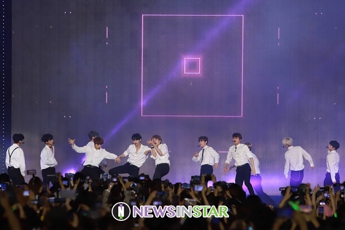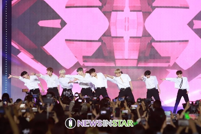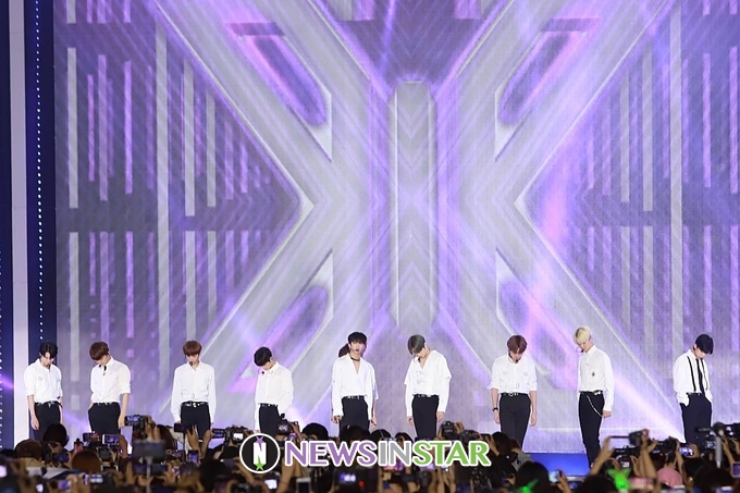 10월 6일 밤 서울시 종로구 광화문광장에서 '제1회 서울 뮤직 페스티벌' 폐막공연인 'SMUF K-POP'이 열려 X1(엑스원)이 'FLASH' 무대를 선보이고 있다.