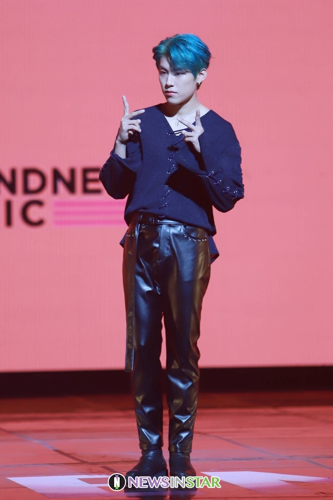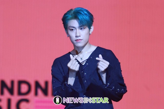 7일 오후 서울시 동대문구 회기동 경희대학교 평화의 전당에서 보이 그룹 AB6IX의 정규앨범 '6IXENSE'의 쇼케이스가 열려 AB6IX 박우진이 포토타임을 갖고 있다.