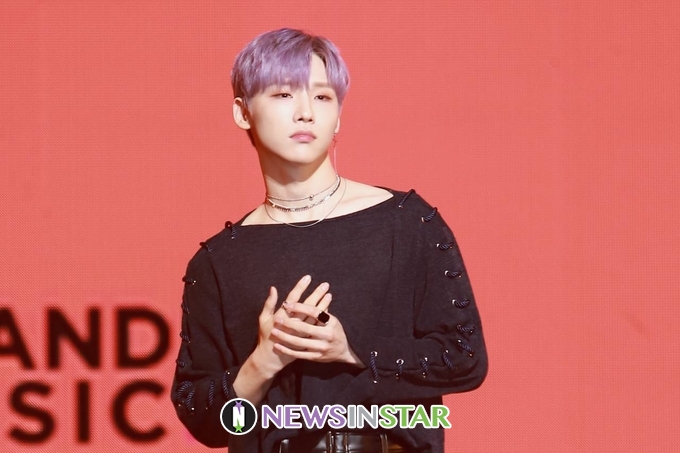 7일 오후 서울시 동대문구 회기동 경희대학교 평화의 전당에서 보이 그룹 AB6IX의 정규앨범 '6IXENSE'의 쇼케이스가 열려 AB6IX 전웅이 포토타임을 갖고 있다.
