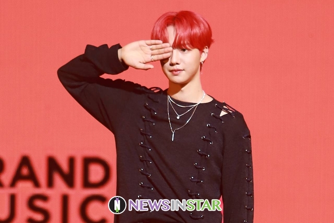 7일 오후 서울시 동대문구 회기동 경희대학교 평화의 전당에서 보이 그룹 AB6IX의 정규앨범 '6IXENSE'의 쇼케이스가 열려 AB6IX 임영민이 포토타임을 갖고 있다.