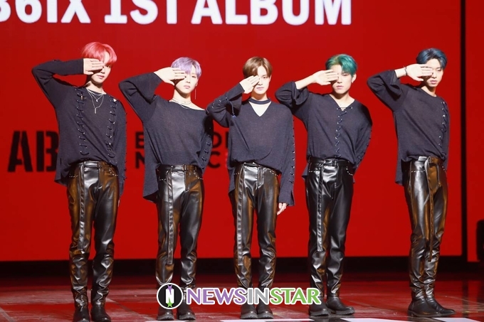 7일 오후 서울시 동대문구 회기동 경희대학교 평화의 전당에서 보이 그룹 AB6IX의 정규앨범 '6IXENSE'의 쇼케이스가 열려 AB6IX가 포토타임을 갖고 있다.