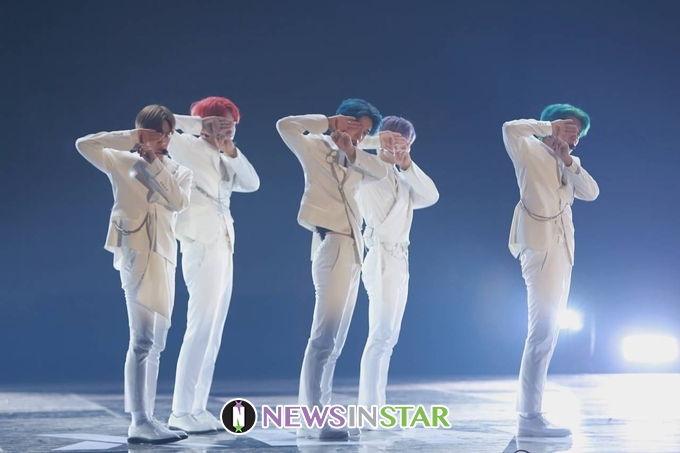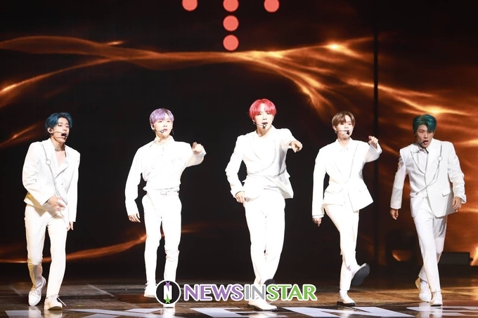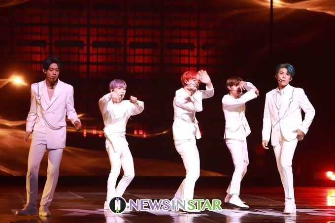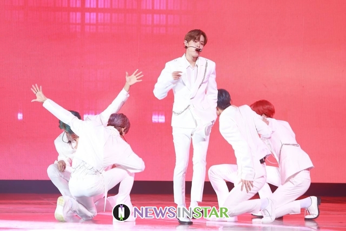 7일 오후 서울시 동대문구 회기동 경희대학교 평화의 전당에서 보이 그룹 AB6IX의 정규앨범 '6IXENSE'의 쇼케이스가 열려 AB6IX가 타이틀곡 'BLIND FOR LOVE' 무대를 선보이고 있다.