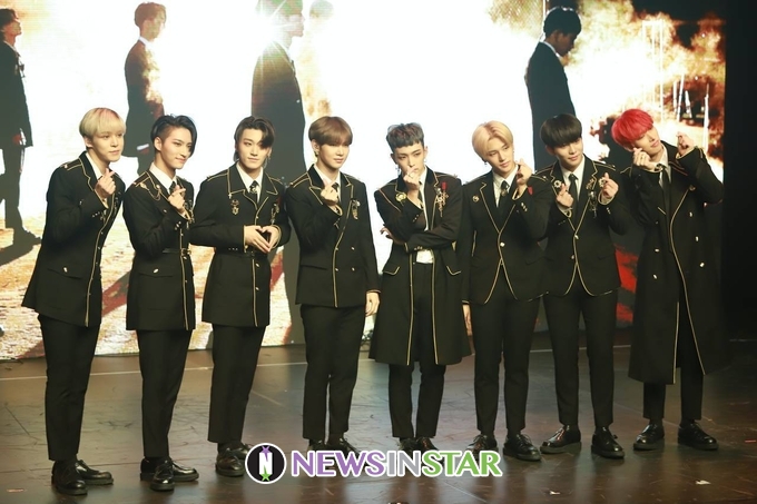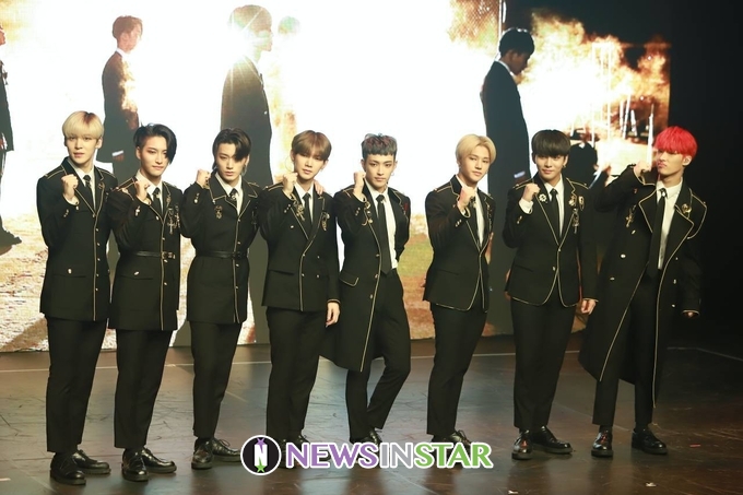8일 오후 서울시 강남구 청담동 일지아트홀에서 보이 그룹 에이티즈(ATEEZ)의 첫 정규 앨범 'TREASURE EP.PIN : All To Action' 쇼케이스가 열려 에이티즈(홍중, 성화, 윤호, 여상, 산, 민기, 우영, 종호)가 포토타임을 갖고 있다.
