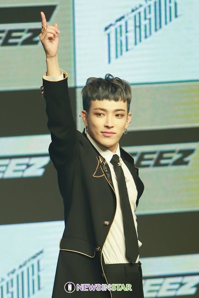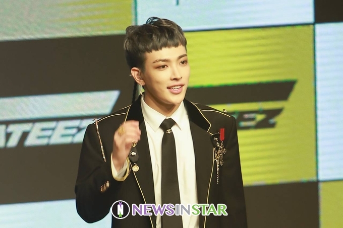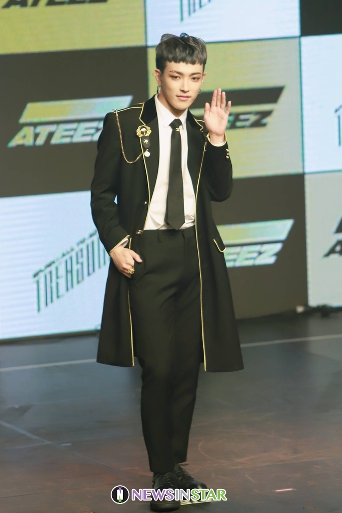 8일 오후 서울시 강남구 청담동 일지아트홀에서 보이 그룹 에이티즈(ATEEZ)의 첫 정규 앨범 'TREASURE EP.PIN : All To Action' 쇼케이스가 열려 에이티즈(홍중, 성화, 윤호, 여상, 산, 민기, 우영, 종호) 홍중이 포토타임을 갖고 있다.