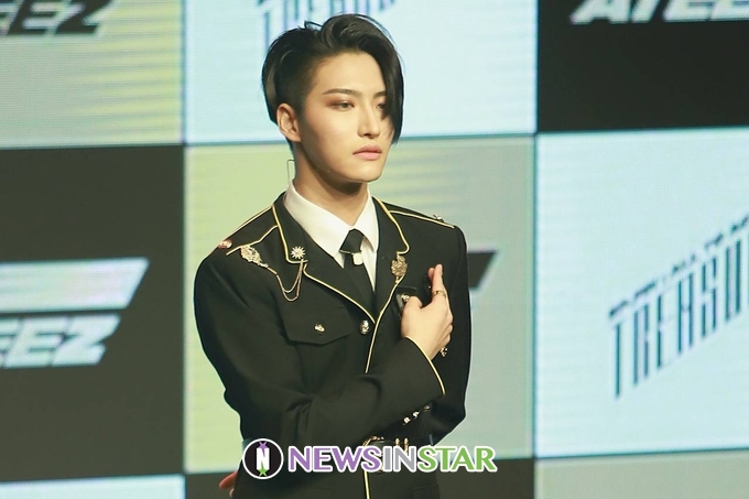 8일 오후 서울시 강남구 청담동 일지아트홀에서 보이 그룹 에이티즈(ATEEZ)의 첫 정규 앨범 'TREASURE EP.PIN : All To Action' 쇼케이스가 열려 에이티즈(홍중, 성화, 윤호, 여상, 산, 민기, 우영, 종호) 성화가 포토타임을 갖고 있다.