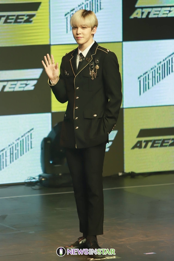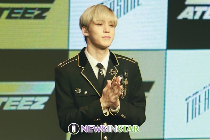 8일 오후 서울시 강남구 청담동 일지아트홀에서 보이 그룹 에이티즈(ATEEZ)의 첫 정규 앨범 'TREASURE EP.PIN : All To Action' 쇼케이스가 열려 에이티즈(홍중, 성화, 윤호, 여상, 산, 민기, 우영, 종호) 윤호가 포토타임을 갖고 있다.