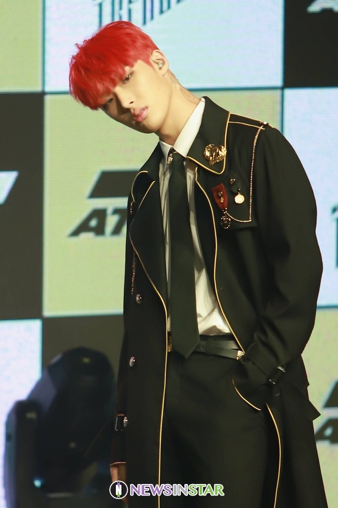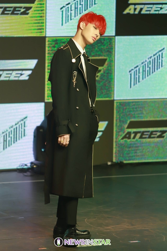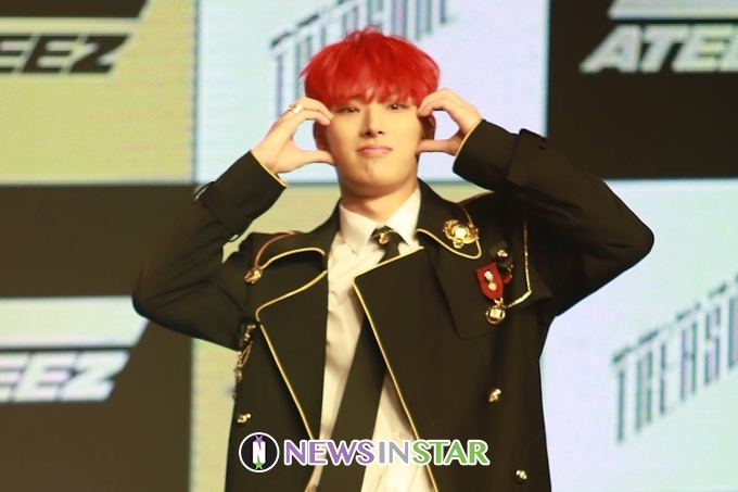 8일 오후 서울시 강남구 청담동 일지아트홀에서 보이 그룹 에이티즈(ATEEZ)의 첫 정규 앨범 'TREASURE EP.PIN : All To Action' 쇼케이스가 열려 에이티즈(홍중, 성화, 윤호, 여상, 산, 민기, 우영, 종호) 민기가 포토타임을 갖고 있다.