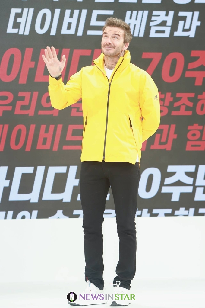 9일 오전 서울시 영등포구 타임스퀘어에서 글로벌 스포츠 브랜드 아디다스(adidas) 창립 70주년 기념으로 세계적인 전 축구스타 데이비드 베컴의 서울 팬미팅 행사가 열려 포토타임 행사를 진행했다.