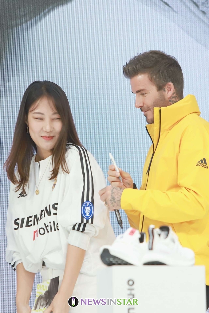 9일 오전 서울시 영등포구 타임스퀘어에서 글로벌 스포츠 브랜드 아디다스(adidas) 창립 70주년 기념으로 세계적인 전 축구스타 데이비드 베컴의 서울 팬미팅 행사가 열려  포토타임 행사를 진행했다.