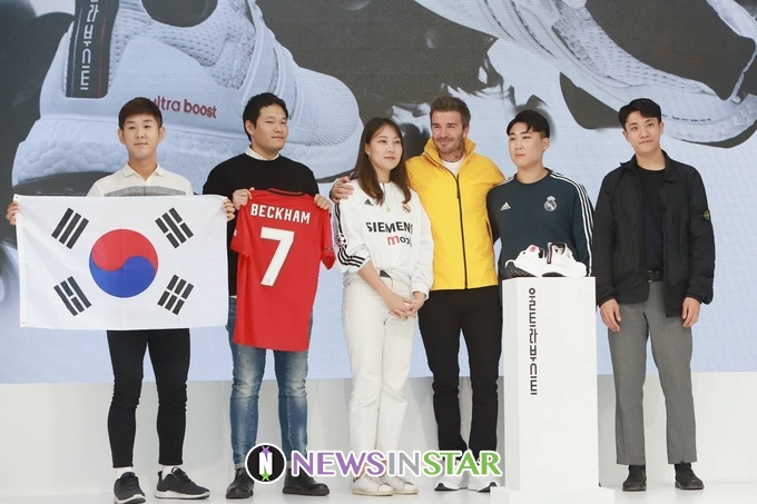 9일 오전 서울시 영등포구 타임스퀘어에서 글로벌 스포츠 브랜드 아디다스(adidas) 창립 70주년 기념으로 세계적인 전 축구스타 데이비드 베컴의 서울 팬미팅 행사가 열려 포토타임 행사를 진행했다.