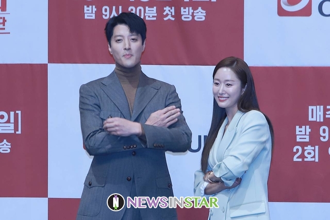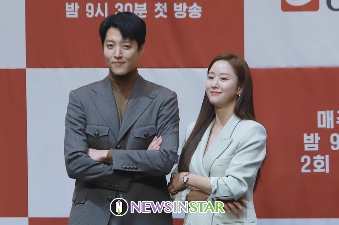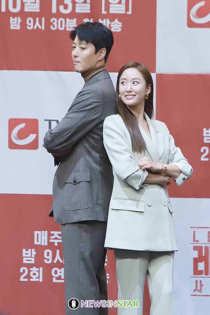 10일 오후 서울시 구로구 신도림동 라마다 서울신도림호텔에서 TV CHOSUN '레버리지 : 사기조작단'의 제작발표회가 열려 배우 이동건X전혜빈이 참석해 포토타임을 갖고 있다.