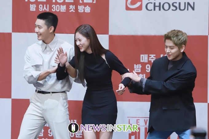10일 오후 서울시 구로구 신도림동 라마다 서울신도림호텔에서 TV CHOSUN '레버리지 : 사기조작단'의 제작발표회가 열려 배우 김권X김새론X여회현이 참석해 포토타임을 갖고 있다.