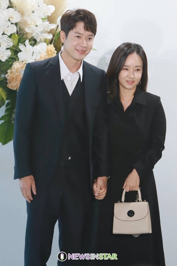 12일 오전 서울시 광진구 광장동 비스타 워커힐 서울에서 가수  강남과 전 스피드 스케이트 선수 이상화 결혼식이 열려 조현재, 박민정부부가 하객으로 참석해 포토타임을 갖고 있다.