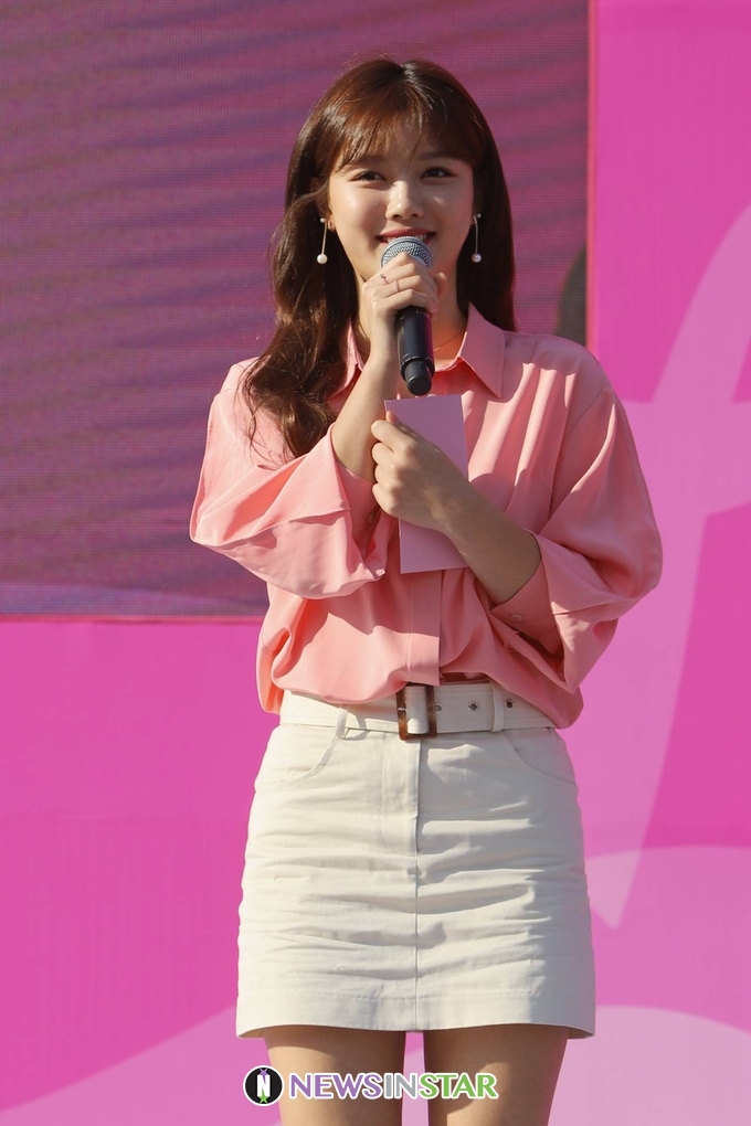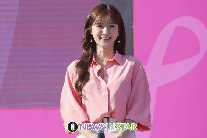 13일 오전 서울시 영등포구 여의도공원에서 '2019 핑크런' 서울 대회가 열려 배우 김유정이 참석해 사전 행사를 진행하고 있다.