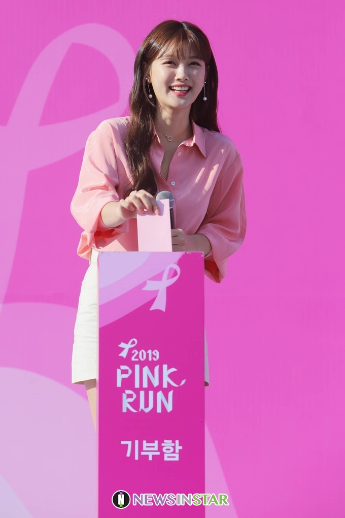 13일 오전 서울시 영등포구 여의도공원에서 '2019 핑크런' 서울 대회가 열려 배우 김유정이 참석해 사전 행사를 진행하고 있다.